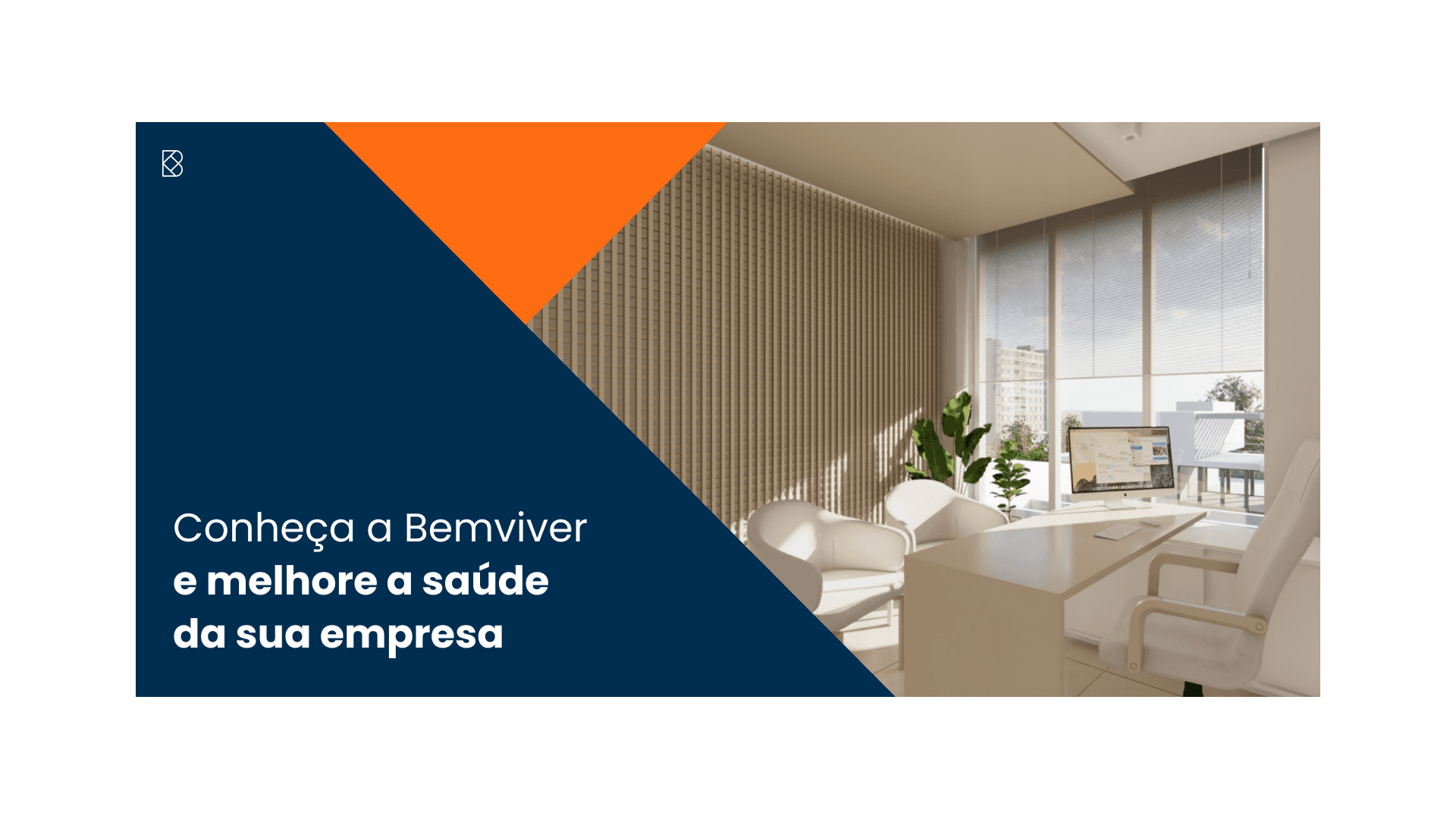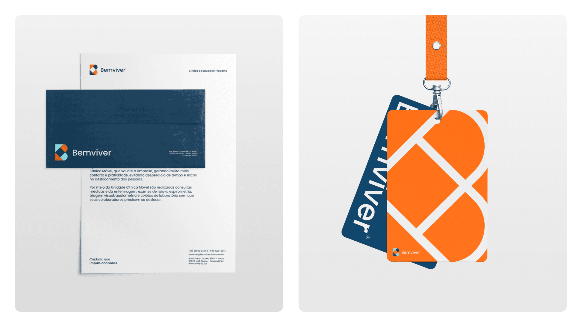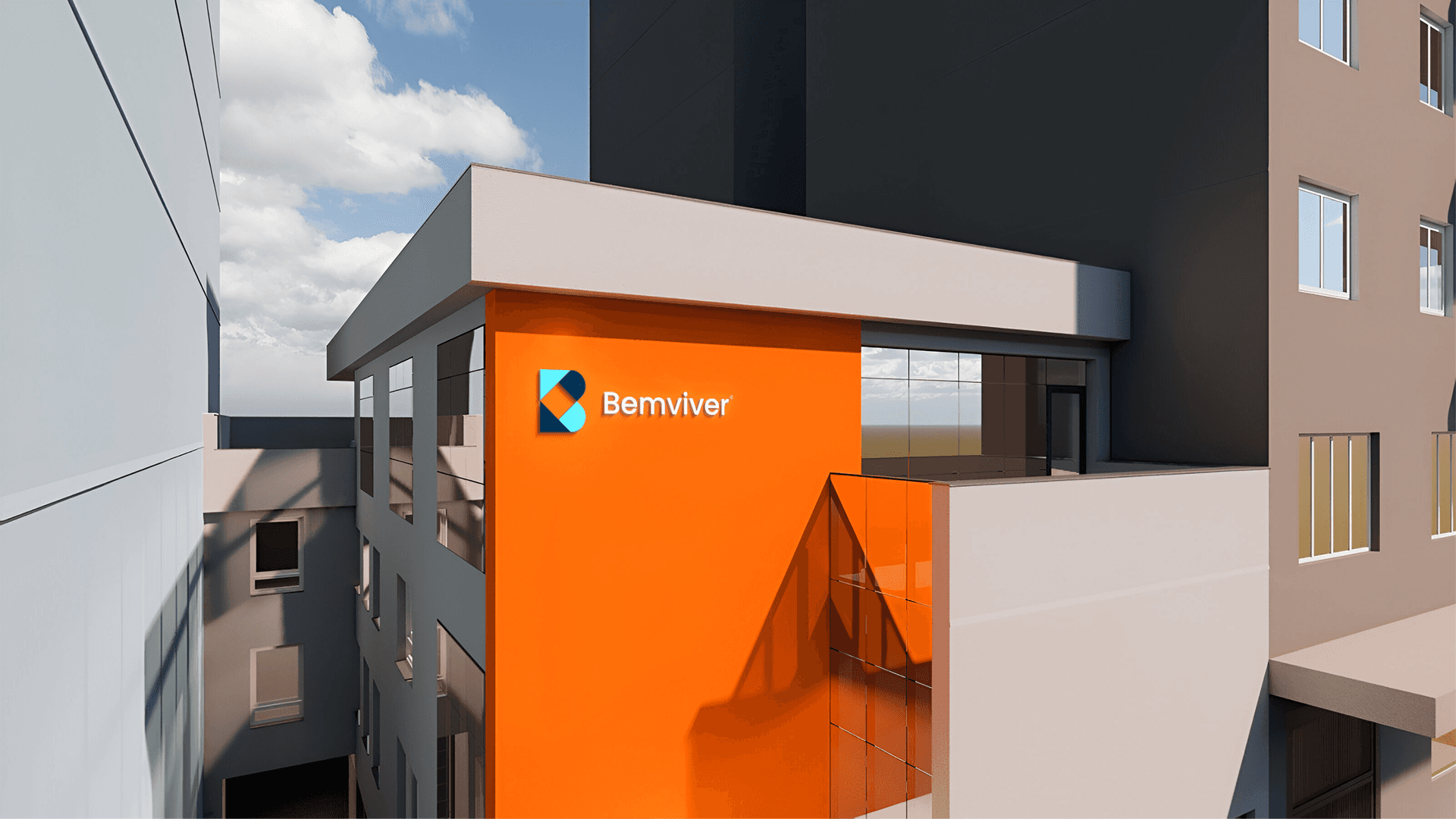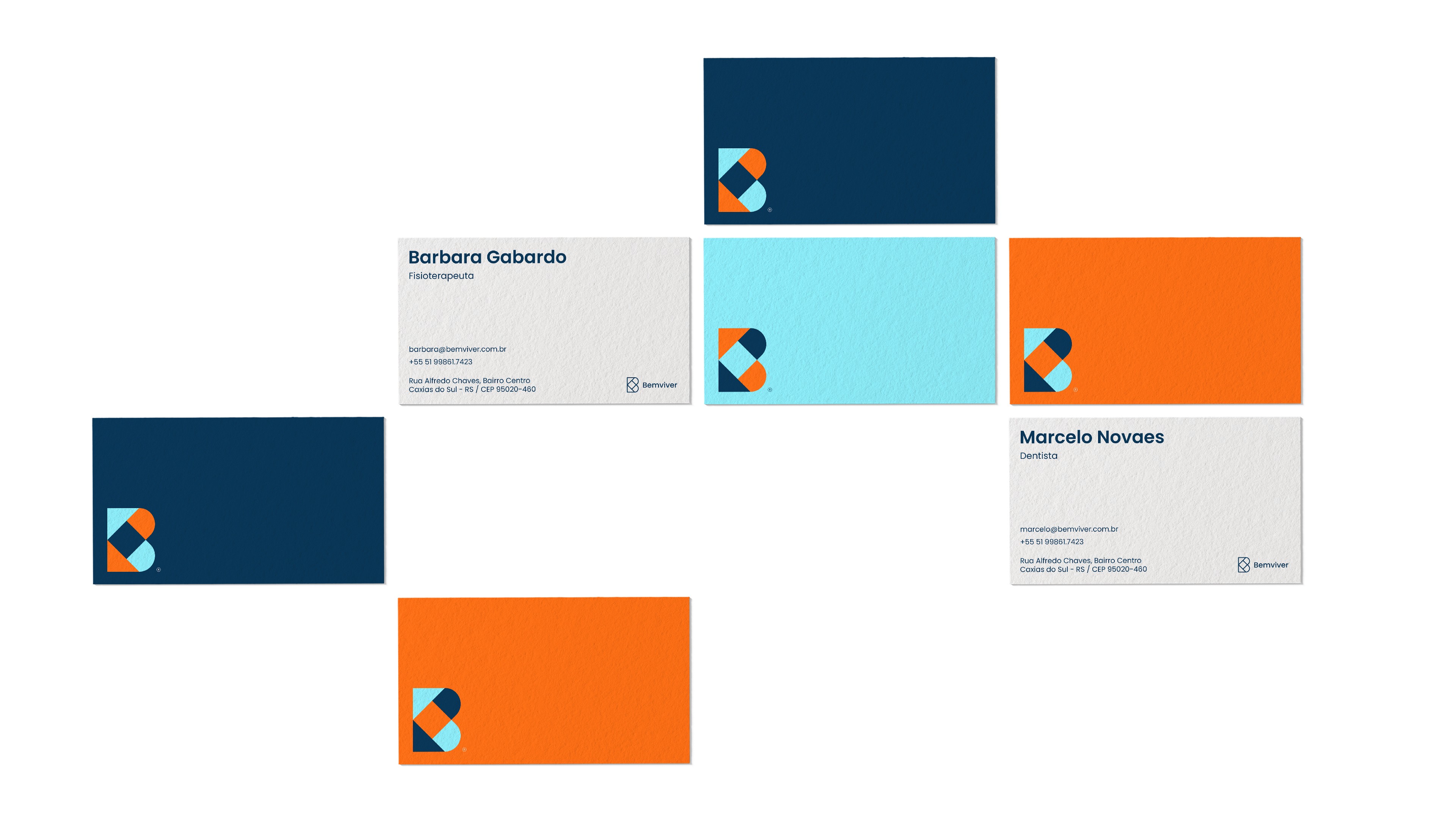 A escolha cromática para a marca Bemviver foi pautada principalmente pelos pilares de confiança, sendo representadas pela cor azul e proximidade, sendo representada pelo laranja.